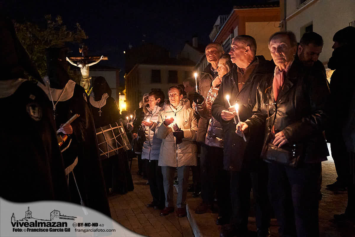 Partiendo de San Pedro, la Cofradía del Santo Entierro con la Imagen de Jesús Crucificado ha iniciado el recorrido por Calle Diego Laínez hasta la Plaza Mayor donde se ha hecho una parada de silencio, oración y reflexión y se ha realizado "el canto" de la Saeta a Nuestro Señor Jesús Crucificado.