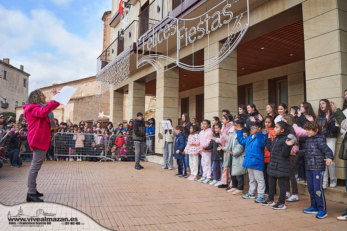 Los alumnos del Colegio De Educación Infantil y Primaria "Diego Lainez", el Colegio "Calasancio", el Centro de Educación de Adultos "El Camino" y el Instituto de Educación Secundaria "Gaya Nuño" adnamantinos se reúnen en la Plaza Mayor de la Villa para cantar y tocar villancicos populares y canciones Navideñas.
